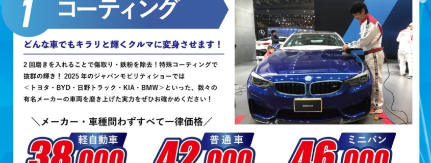 原点である “車の磨きコーティング施行を特別価格でご提供いたします。