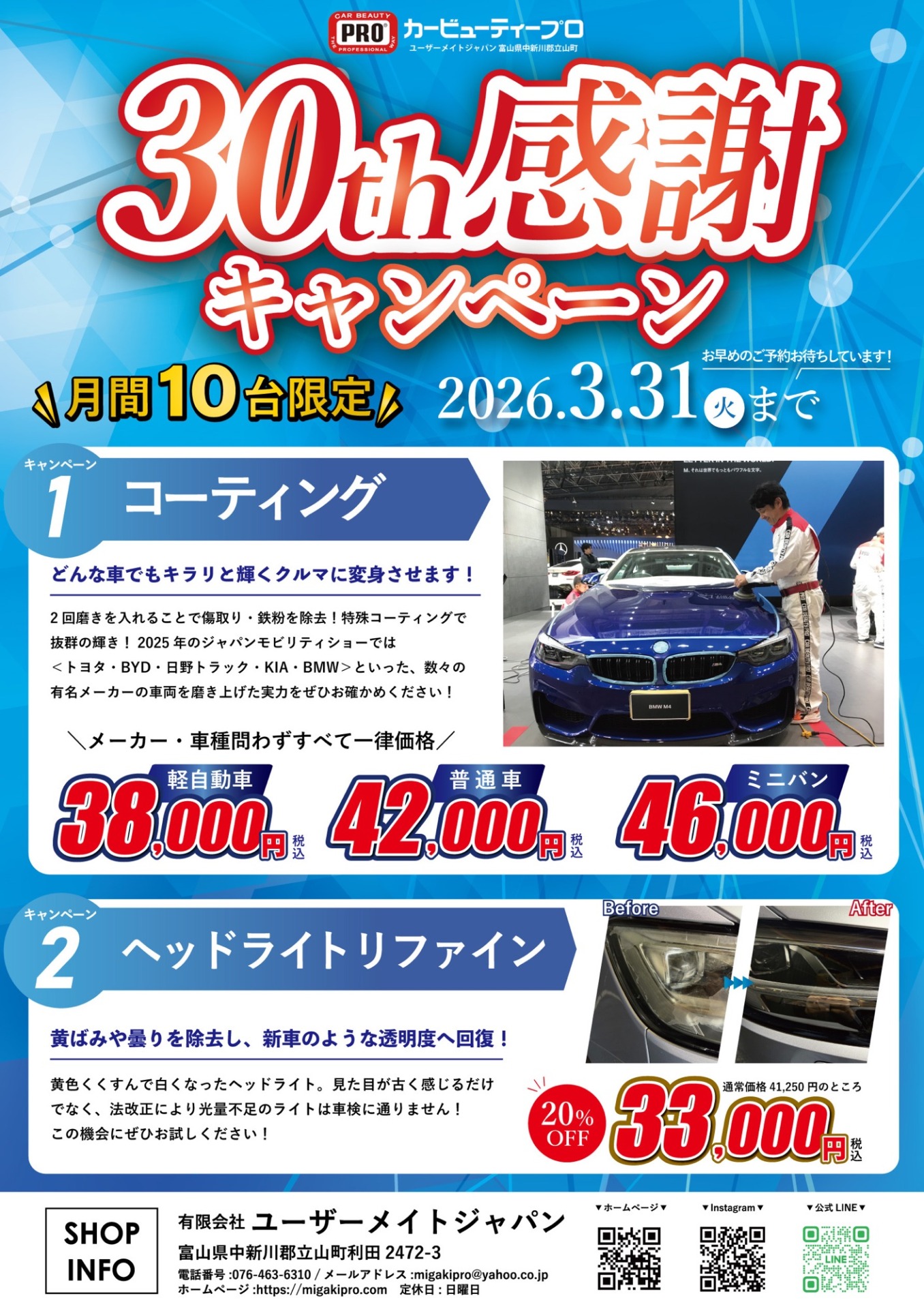 ※ガラスコーティングは対象外ですが、キャンペーン特典として
