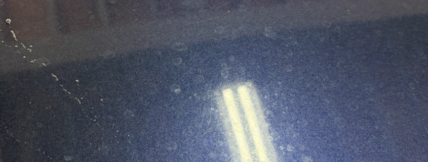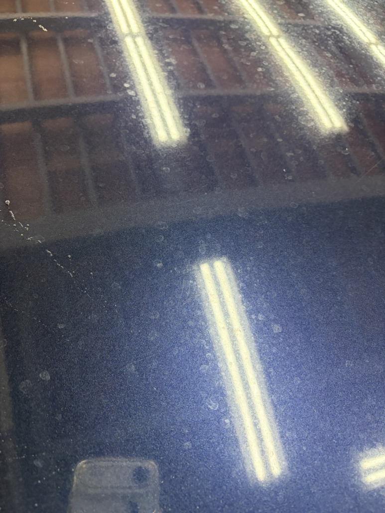 しかし現車確認をすると、ボディ全体に水ジミ(いわゆる鱗状痕)が多く付着。