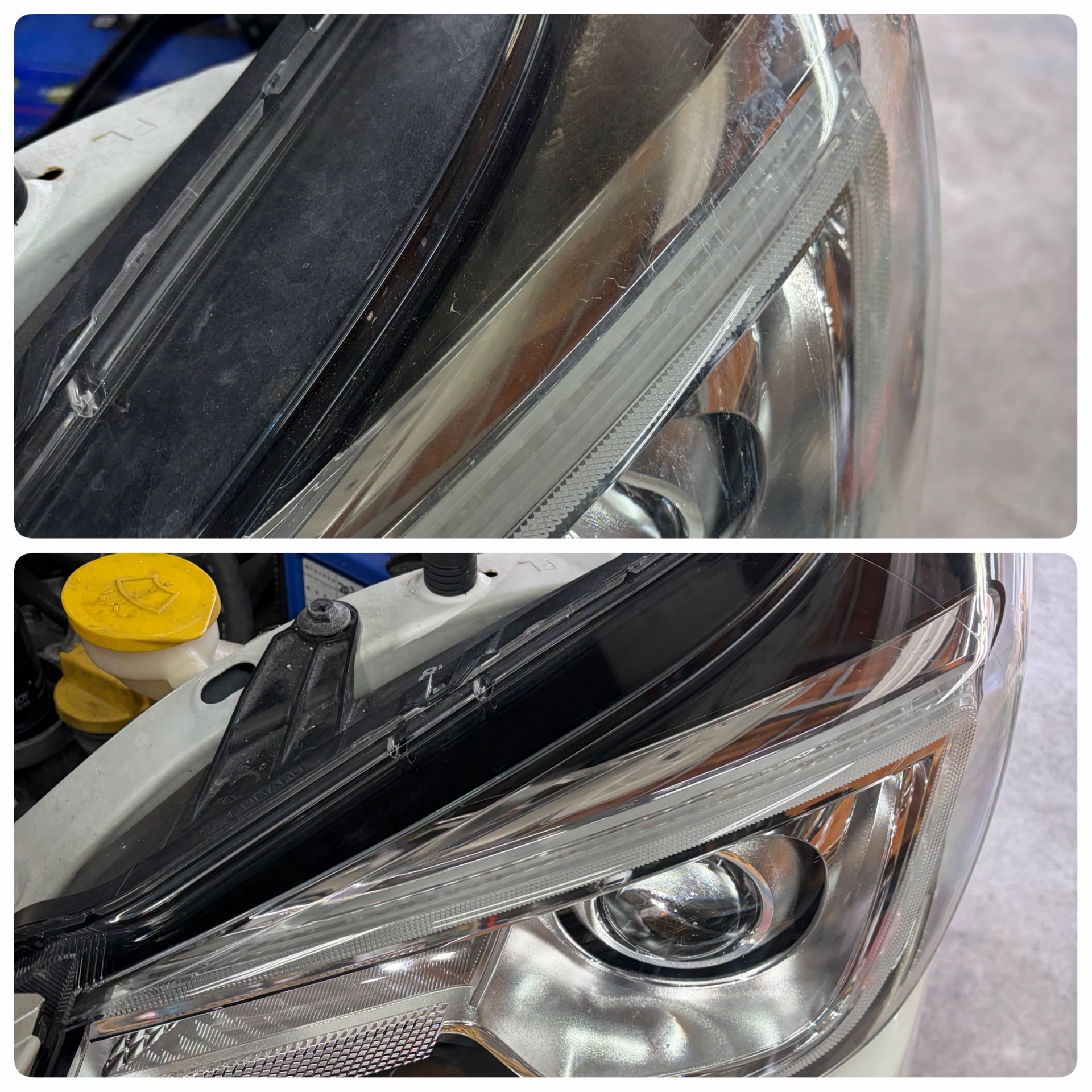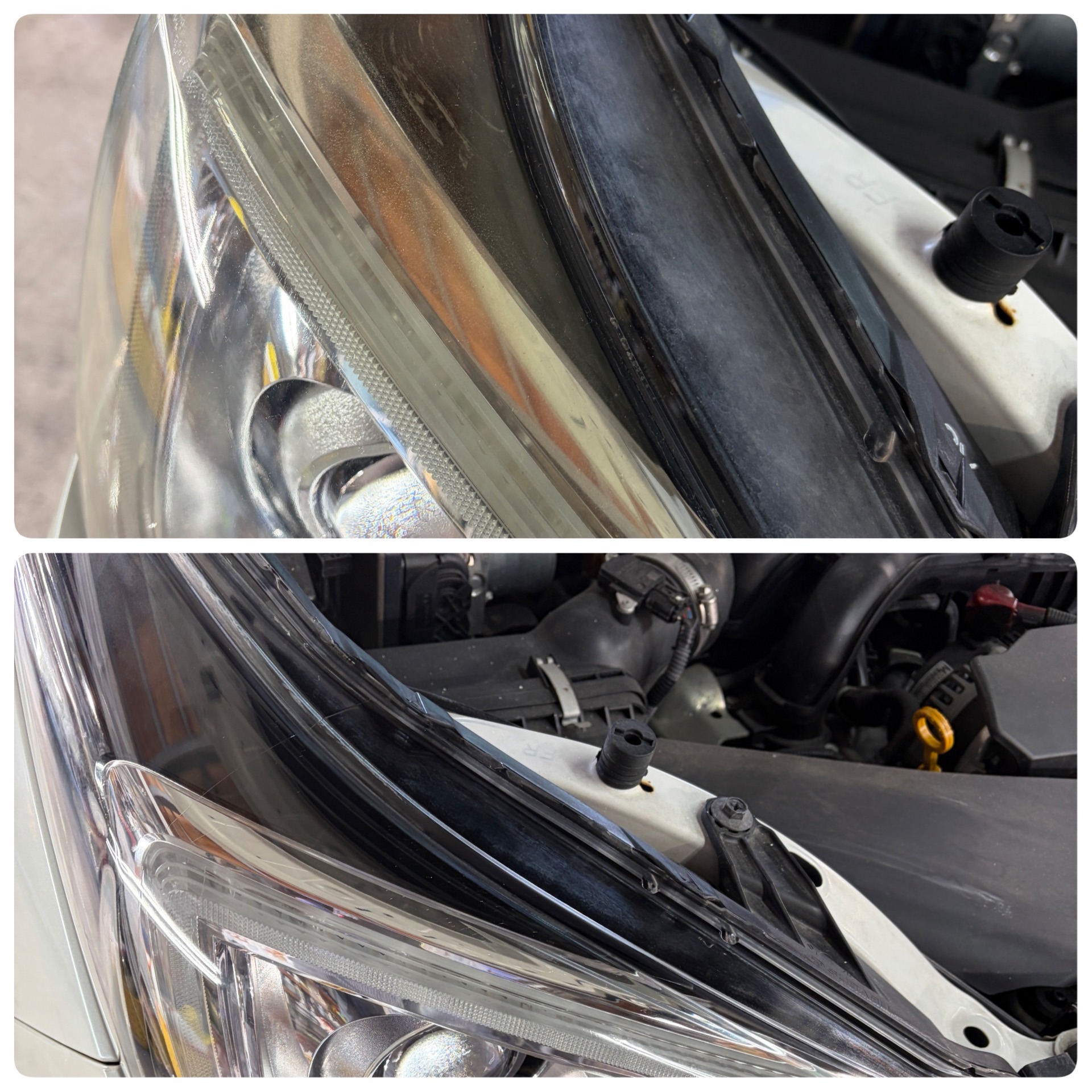 ヘッドライトは上部が紫外線によって焼け、黄ばみが発生している状態でした。