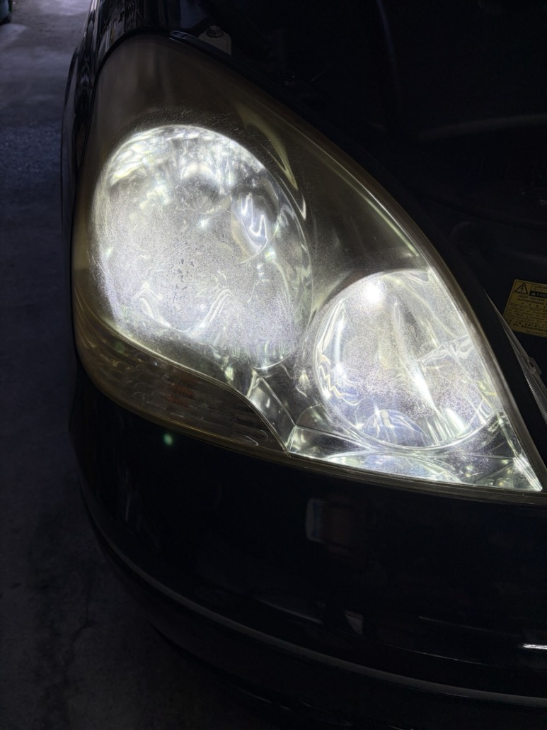 施工後は、最初の状態との違いがはっきりわかるほど見た目が改善し、ヘッドライトの印象が大きく若返りました。