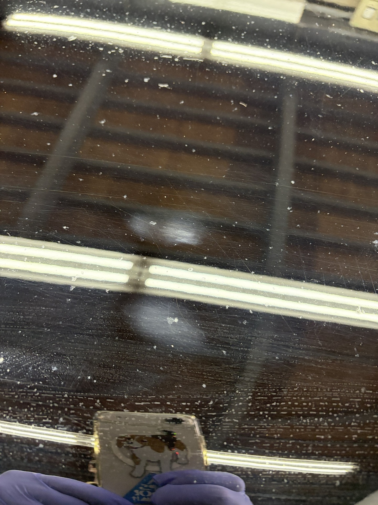 **ウォーターデポジット(クレーター状のシミ)**です。